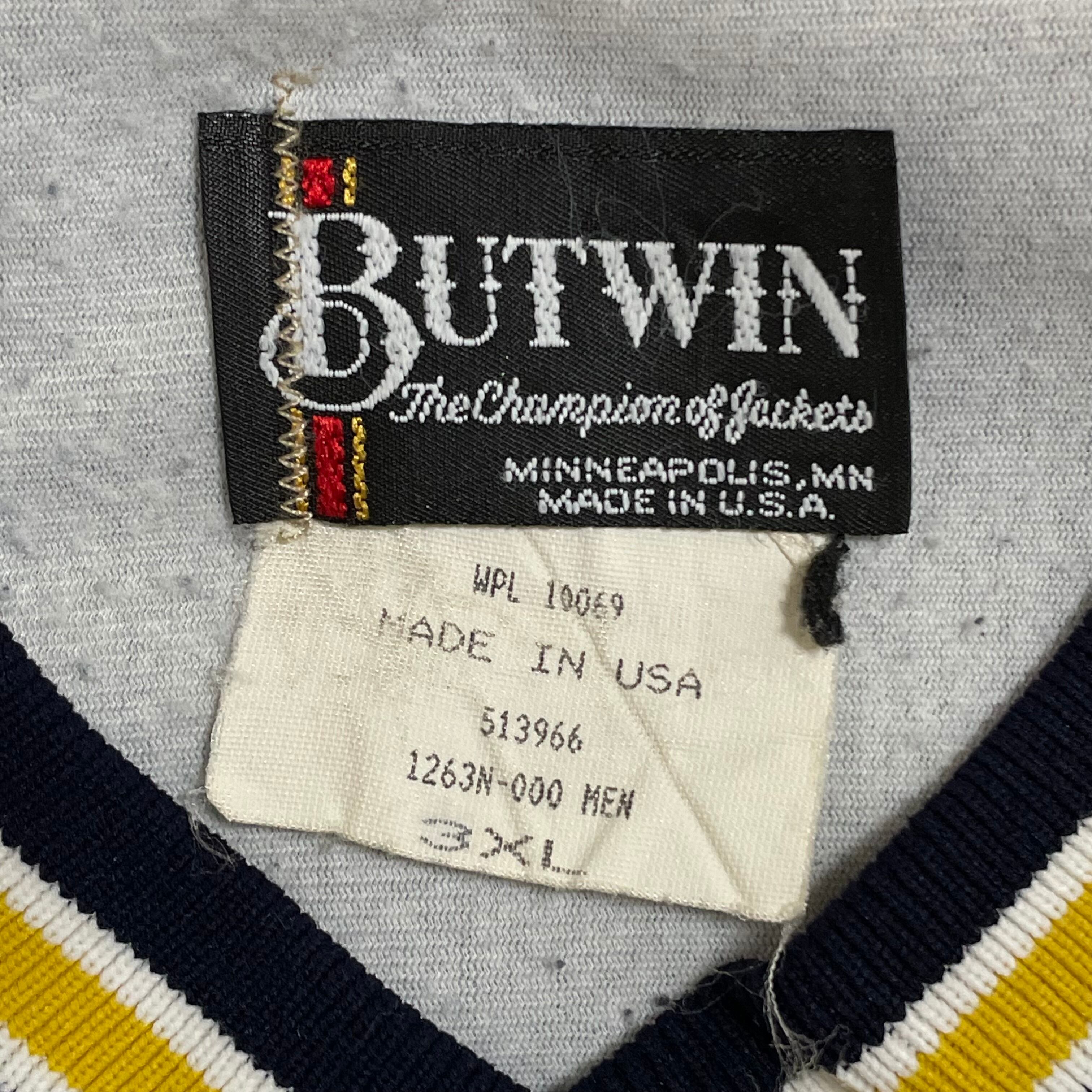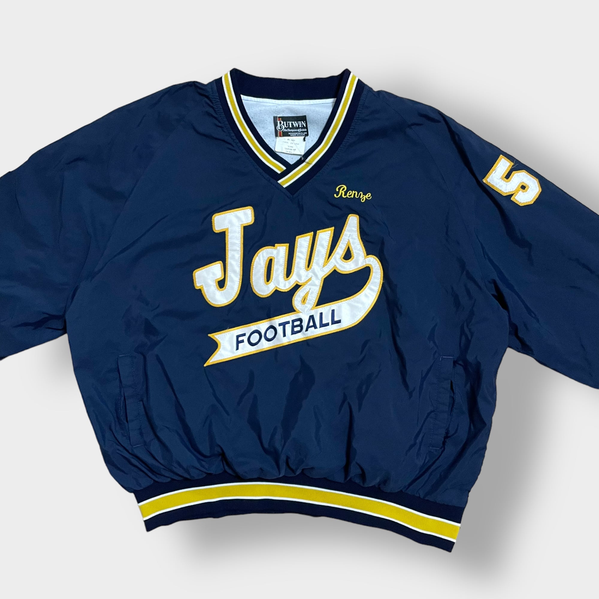 BUTWIN 90s USA製 ナイロン プルオーバー 刺繍ロゴ 3XL ビッグシルエット ビッグサイズ ゆるだぼ football フットボール バドウィン US古着