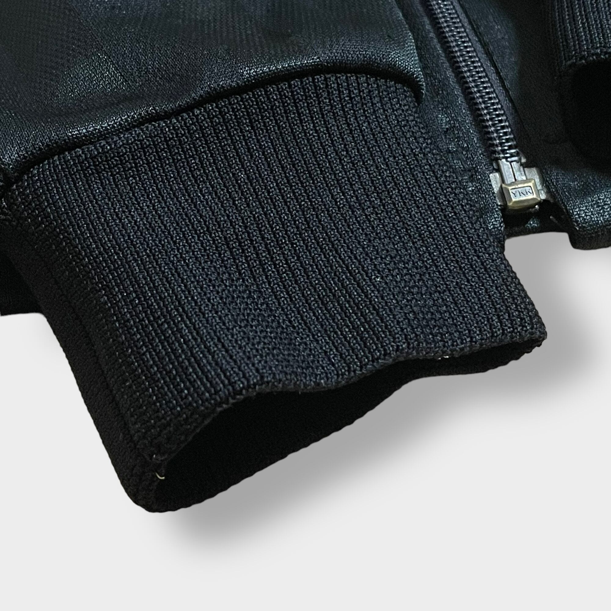 フルジップ、ラグランスリーブでスッキリとしたシルエットです。所謂ジャージ素材で着やすく動きやすいです。