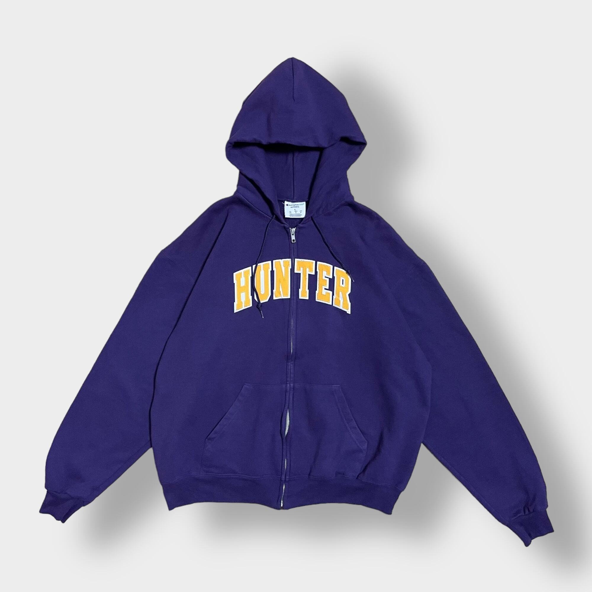 Champion スウェット ジップアップ フルジップ パーカー HUNTER 刺繍ロゴ フーディー L パープル チャンピオン us古着