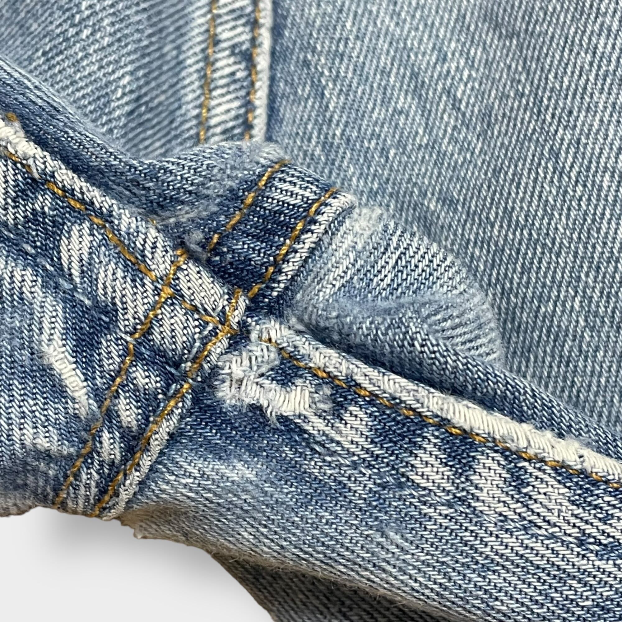 トルコ製、ボタンフライ、ストレートの定番シルエット。程よい色落ちで雰囲気のある一本です。